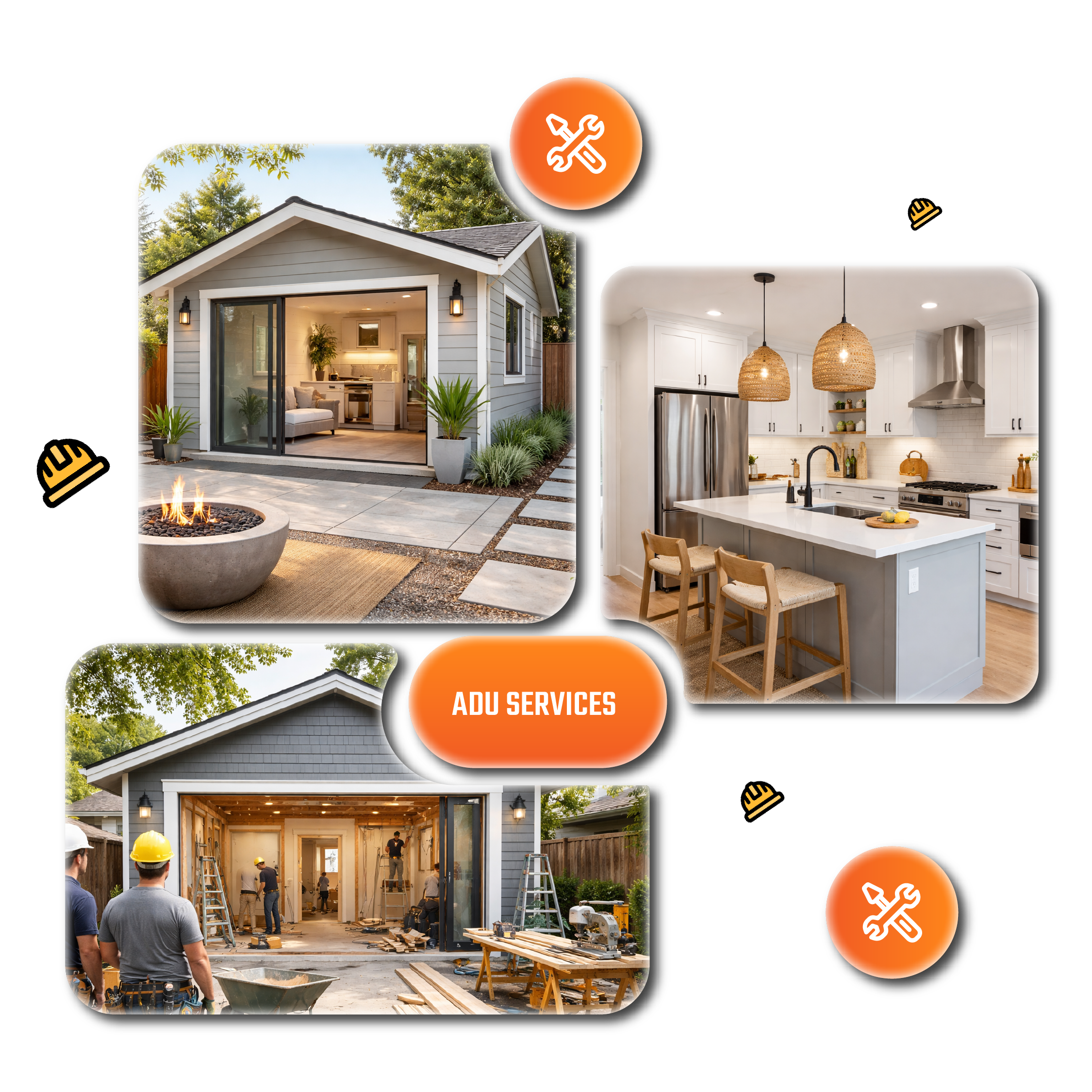 We specialize in ADU construction, kitchen and bathroom remodeling, complete house construction, general remodeling, and home additions for both residential and commercial clients.